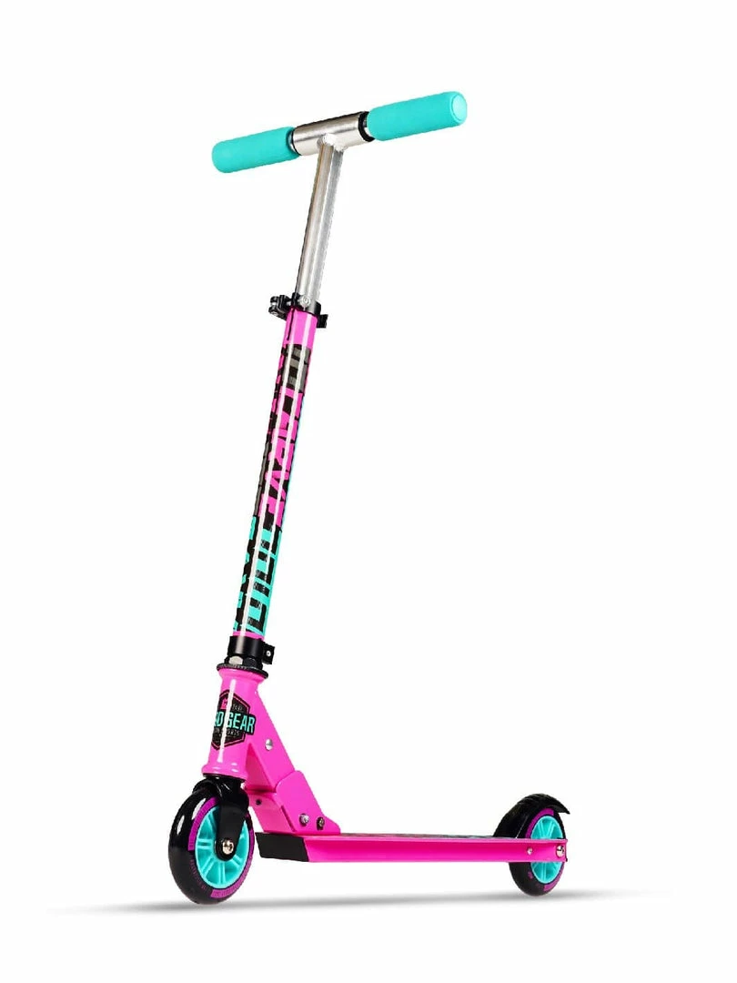 The Madd Gear Carve 100 Folding Scooter – Pink Teal with Adjustable Handlebar is our lightest and most compact scooter for kids! With adjustable handlebar for any size rider 3 years and up and a quality industry leading construction!
