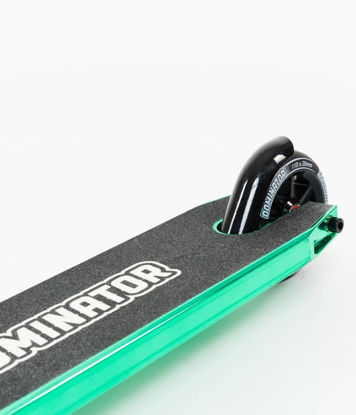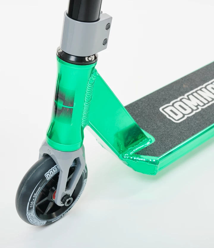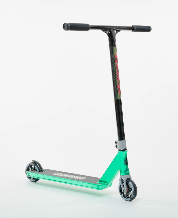 The Dominator Team Edition is back, this time dripping in Green Chrome paint and featuring gloss black handlebars. This is the exact model that the Dominator Pro Team are riding and is suitable for advanced and pro level riding ability. Kitted out with District components which include wheels, forks and grips – you won’t find a better value for money high-end complete scooter on the market. High grade military, 6061 heat treated aluminum handlebars and deck mean that this complete can withstand all of the demands of a top level rider.