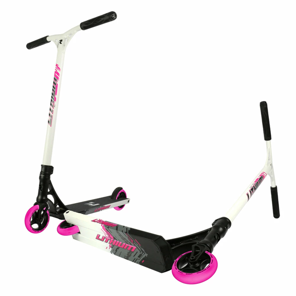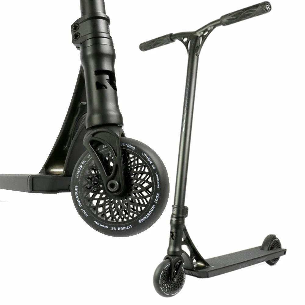Root Ind. Lithium Complete Scooter – This thing is dope. Its one of the scooters that we find ourselves picking up and messing around on here at The Farm on an almost daily basis. It is a super balanced complete and the fact that it has 110x30mm wide wheels makes it a blast to ride. The aluminum bars make it an ideal scooter for any younger or smaller rider to learn and progress on. The bars come 24â x 23â on a forged IHC Lithium fork. The forged Lithium Deck comes 4.8â x 20.6â with an 82.5 degree headtube angle and 2 degrees of concave.